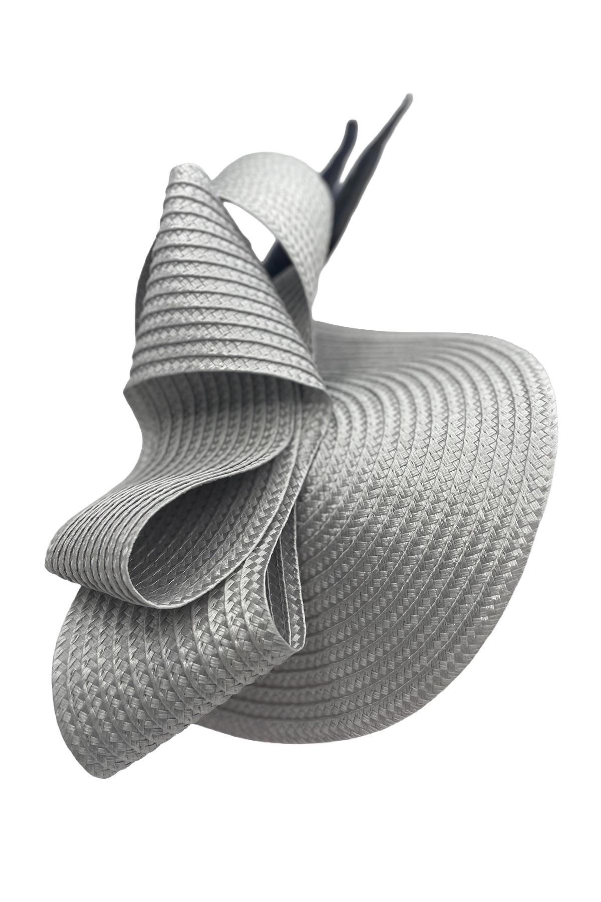 El Tocado Gris modelo Ginebra es una pieza sofisticada y contemporánea, diseñada para realzar con elegancia cualquier look de boda, fiesta o evento especial. Elaborado en fibra trenzada gris, su estructura se despliega en delicados lazos que aportan volumen, dinamismo y una silueta escultural única.