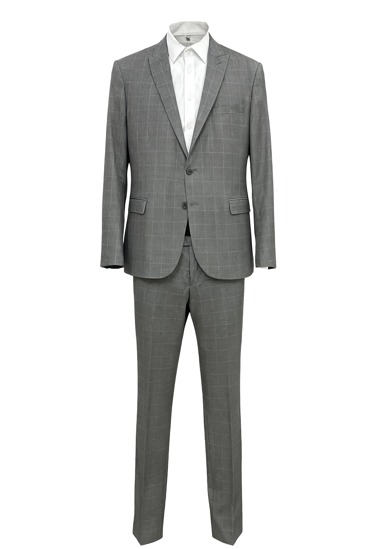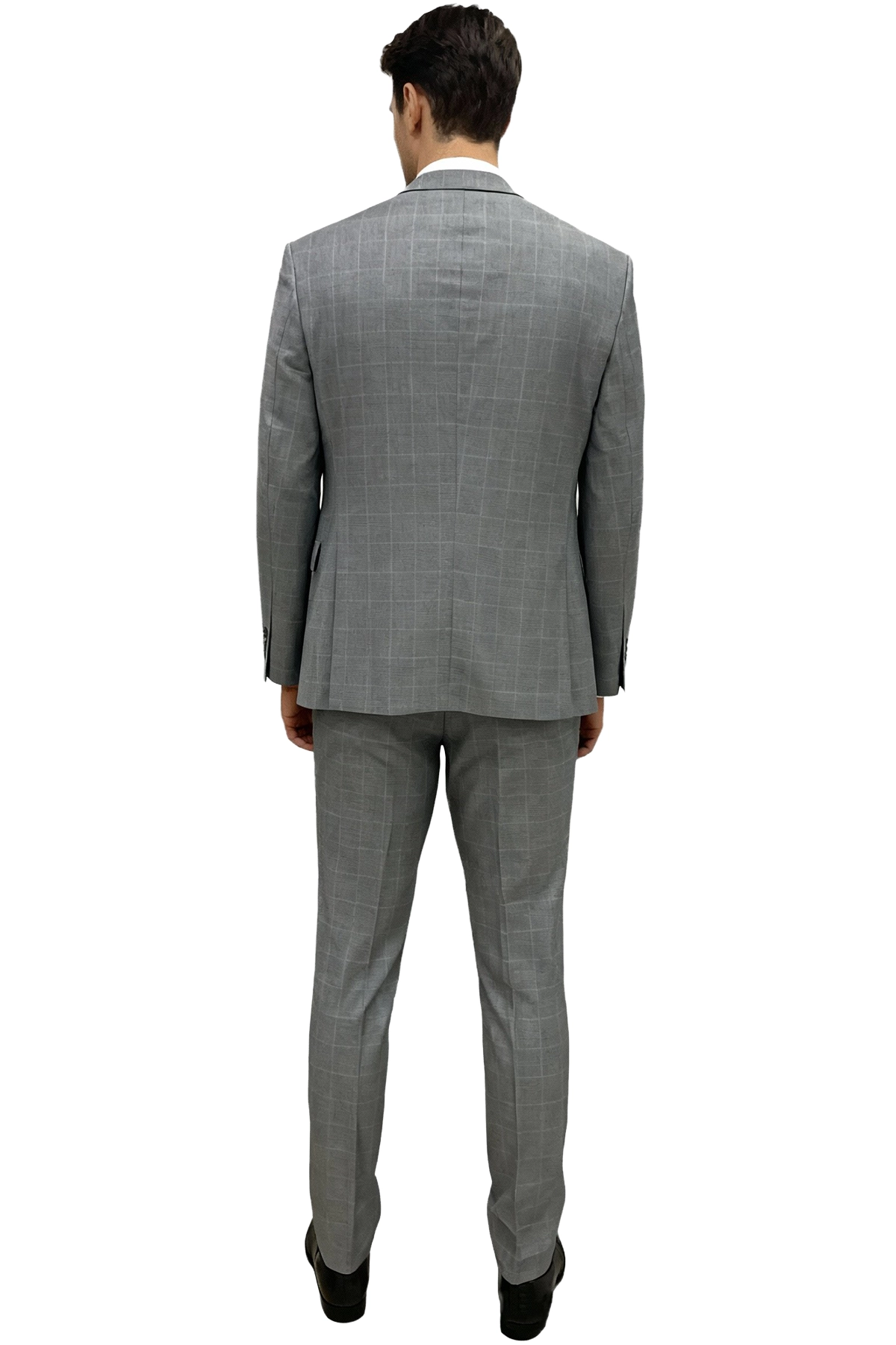 Traje hombre impecable color gris cuadraditos modelo Antonio
